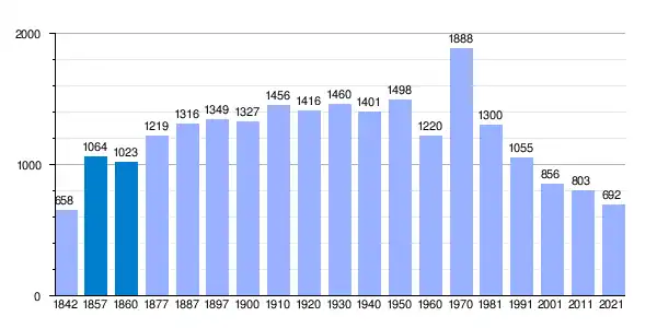 | Gráfica de evolución demográfica de Langa de Duero[15] entre 1842 y 2021 |