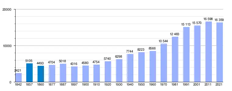 | Gráfica de evolución demográfica de Las Cabezas de San Juan[4] entre 1842 y 2021 |