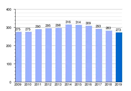 | Gráfica de evolución demográfica de Las Herrerías entre 2009 y 2019 |
