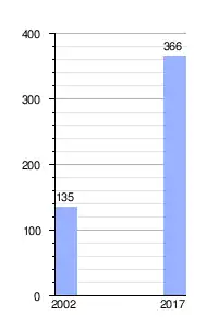 | Gráfica de evolución demográfica de Las Palmas de Ocoa entre 2002 y 2017 |