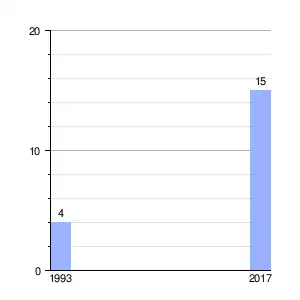 | Gráfica de evolución demográfica de Las Peñas entre 1993 y 2017 |