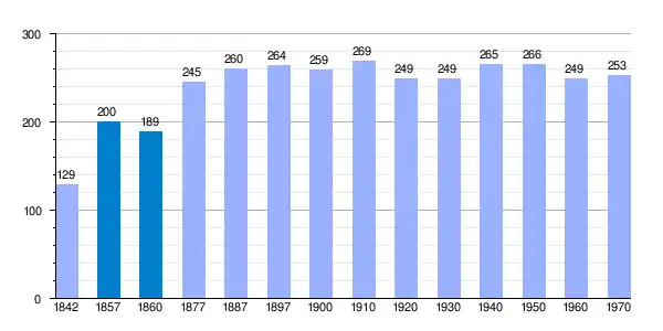 Población de derecho según los censos de población del INE Población de hecho según los censos de población del INEEntre el censo de 1981 y el anterior, este municipio desaparece porque se agrupa en el municipio 37032 (Arapiles)[6] |