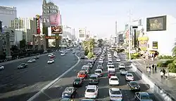 ![]() Parte sur del Strip, en Las Vegas, donde se localiza aproximadamente la tercera parte del Strip. | ||