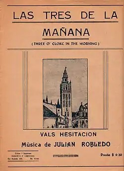 Julián Robledo publicó el vals “Las tres de la mañana” (también conocido como “Vals de las campanas”) en Los Estados Unidos en 1919 en la ciudad de Nueva Orleans. Este vals fue publicado en la forma de una partitura para piano con el título en inglés de “Three O’Clock in the Morning”. En 1920 la música también fue publicada en Inglaterra y Alemania.[3]