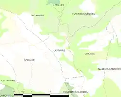 - ↑ INSEE, Datos de población para el año 2012 de Lastours (en francés).