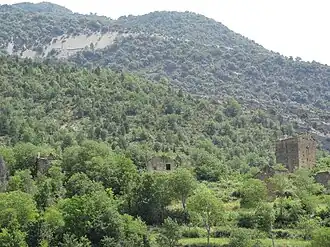 Aldehuela compuesta de unas cuantas construcciones, entre ellas dos torres cuadradas, levantadas, sin duda, en otros tiempos para defender el acceso a la garganta [del río Ara][2]