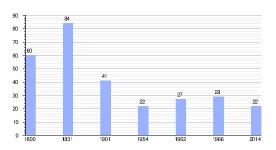 Los datos demográficos contemplados en este gráfico de la comuna de Lavilleneuve-aux-Fresnes[5] se han cogido de 1800 a 1968 de la página francesa EHESS/Cassini. Los demás datos se han cogido de la página del INSEE.[6]