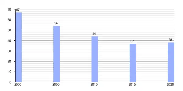 | Gráfica de evolución demográfica de León (aldea) entre 2000 y 2020 |
