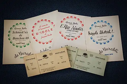 - 1976 : …As d’Schwarte Krache, de Germain Muller, música : Mario Hirlé, decorados : André Wenger, disfraces : Inès Wagner, coreografía : Jean Garcia. Con Germain Muller, René Wieber, Charles Falck, Michel Pierrat, André Flick, Bernard Gir, Jean-Jacques Supper, Maurice, Mario Hirlé, Robert Breysach, Dinah Faust, Yvette Veit, Elisabeth Best, Christiane Charel, Sylviane Pitour, Anne Wenger.