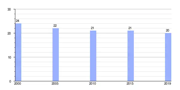 | Gráfica de evolución demográfica de Lebrujo (parroquia) entre 2000 y 2019 |
