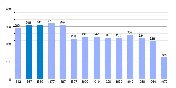 | Gráfica de evolución demográfica de Ledesma de Soria[7] entre 1842 y 1970 |