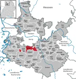 Se encuentra ubicado al noroeste del estado, en la región de Karlsruhe, cerca de las ciudades de Heidelberg y Mannheim, del lugar donde confluyen los ríos Neckar y Rin, y de la frontera con los estados de Hesse y Renania-Palatinado.