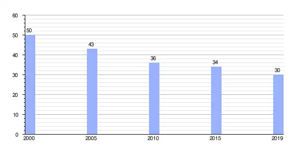 | Gráfica de evolución demográfica de Lexo (aldea) entre 2000 y 2019 |