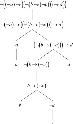 A cada símbolo lógico se le asocia una operación interna sobre el conjunto de expresiones, así se formalizan las expresiones bien formadas mediante su construcción.