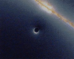 La imagen de la derecha muestra una simulación del efecto de lente gravitacional causado por un agujero negro de Schwarzschild al pasar por delante de una galaxia de fondo. Una imagen secundaria de la galaxia se puede ver dentro del radio de Einstein del agujero negro en el lado opuesto de la galaxia. La imagen secundaria crece (quedándose dentro del anillo de Einstein) a medida que la imagen principal se acerca al agujero negro. El brillo superficial de las dos imágenes se mantiene constante, pero su tamaño angular varía, por lo tanto, produciendo una amplificación de la luminosidad de la galaxia vistas por un observador distante. La amplificación máxima se produce cuando la galaxia (o en este caso una parte brillante de la misma) esta exactamente detrás del agujero negro.