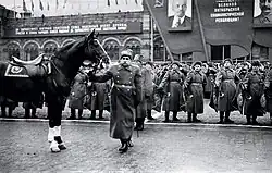 El 24 de junio de 1945, el mariscal de la Unión Soviética Leonid Góvorov participó en el histórico Desfile de la Victoria de Moscú en la Plaza Roja, al frente de las unidades del Segundo Frente Báltico.[20]