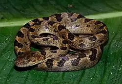 La culebra ojo de gato bandada, también llamada culebra bandeada con ojos de gato o serpiente escombrera.[1] asimismo denominada falsa mapanare (Leptodeira annulata) es una serpiente de tamaño pequeño, usualmente menor de 1 metro, pero puede llegar a medir 1.65 metros que habita en América Central, América del Sur, Margarita y Trinidad y Tobago.[2] También se distribuye en México,[1] Esta culebra pertenece a la familia Dipsadidae en el orden Squamata (lagartijas y serpientes,[1]). Se alimenta de ranas, pequeños reptiles y ocasionalmente de pequeñas aves. El dorso de su cuerpo presenta un patrón de coloración que va de crema a grisáceo o color café tierra, con marcas cafés o manchas dorsales negras. Puede presentar marcas en la parte lateral o manchas intercaladas. La región dorsal de la cabeza puede ser solo café o negra, o café claro con marcas moteadas aparentando ser un collar nucal. Su distribución va del sur de Tamaulipas hacia el sur de Guerrero, en elevaciones bajas y moderadas a lo largo de ambas costas de México (excluyendo el bosque húmedo del sureste de Veracruz y la Península de Yucatán) a través de la meseta central y toda la costa del Pacífico de América Central hasta Panamá; dos subespecies llegan hasta el sur de Sao Paulo, Brasil, cruzando parte de América del Sur a lo largo de la costa del Atlántico. En México, la especie se ha observada en 19 estados: Chhuahua, Sinaloa, Nayarit, Jalisco, Colima, Michoacán, Guerrero, Oaxaca, Chiapas, Nuevo León, Tamaulipas, Zacatecas, San Luis Potosí, Veracruz, Estado de México, Ciudad de México, Puebla, Morelos y Yucatán.[1] El género Leptodeira habita en gran variedad de climas y en altitudes de 0-2,000 m s. n. m. L. annulata puede encontrarse en el bosque tropical perennifolio, bosque tropical caducifolio y en hábitats secos, soportando temperaturas de hasta 40 °C en algunas localidades. En México, la NOM-059-SEMARNAT-2010 considera a esta serpiente terrestre como Sujeta a Protección Especial; la IUCN 2019-1 como de Riesgo bajo. Entre las principales amenazas a esta especie se encuentran la destrucción de su hábitat y el incremento de los asentamientos humanos que demandan mayor uso de recursos.[1]