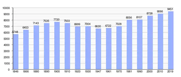 Todos los datos históricos relativos al actual municipio, el siguiente gráfico refleja su evolución demográfica, incluyendo municipios después de efectuada la fusión el 1 de enero de 1977.