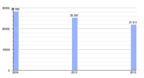 | Gráfica de evolución demográfica de Les Varreux entre 2009 y 2015 |
