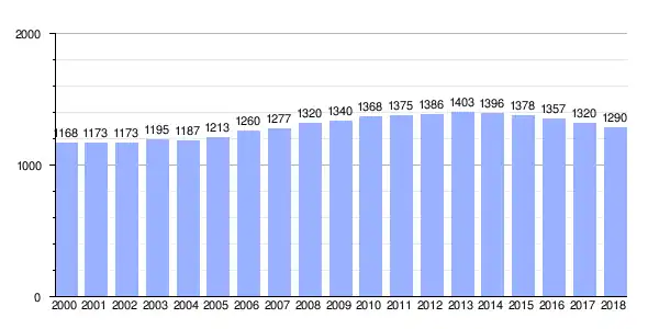 | Gráfica de evolución demográfica de Lestón[2] entre 2000 y 2018 |