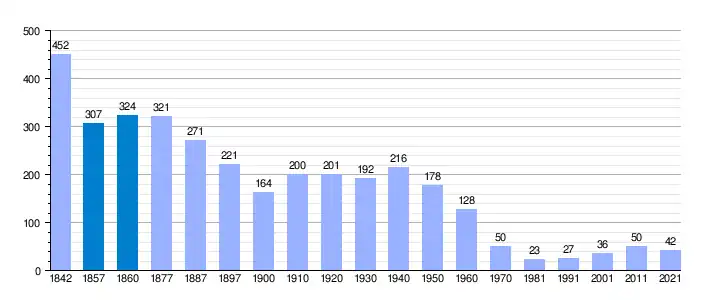| Gráfica de evolución demográfica de Leza de Río Leza[3] entre 1842 y 2021 |