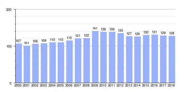 | Gráfica de evolución demográfica de Liñares entre 2000 y 2018 |