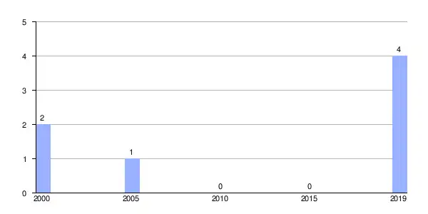 | Gráfica de evolución demográfica de Liñariños entre 2000 y 2019 |