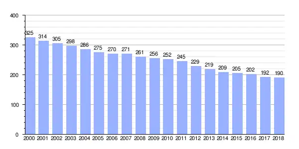 | Gráfica de evolución demográfica de Liñayo (parroquia) entre 2000 y 2018 |