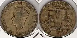 Durante el siglo XX en Jamaica siguieron emitiéndose monedas de ¼, ½ y 1 penique, y sus componentes oscilaban entre el cuproníquel desde 1869, el níquel-Latón desde 1937 y el cuproníquel-zinc en 1969.[9] A mediados de este último año la libra fue sustituida por el dólar jamaiquino, a razón de 1 libra jamaiquina = 2 dólares jamaiquinos. La nueva divisa puesta en curso legal, el dólar, se subdivide en 100 centavos.[10][11]