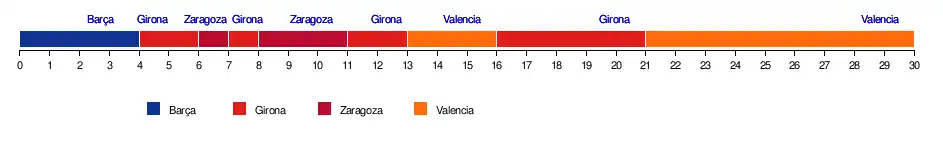 | Local \ Visitante | BAR | CLS | CAZ | TEF | ENS | BEM | JAI | IDK | TSN | ARA | GER | EST | AVE | GIR | GCA | VAL |
