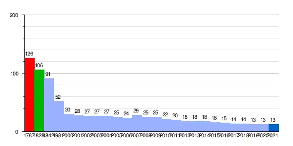 | Gráfica de evolución demográfica de Ligos[7] entre 1787 y 2021 |