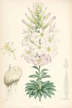 La planta alcanza una altura de 2 m de altura, y tienen unas flores de color blanco o rosado, olorosas, que a menudo se decoran con puntos púrpura. Los tépalos tienen de 6 a 9 cm de longitud y están fuertemente recurvadas. Se encuentran en chaparrales, bosques abiertos y áreas recientemente quemadas.