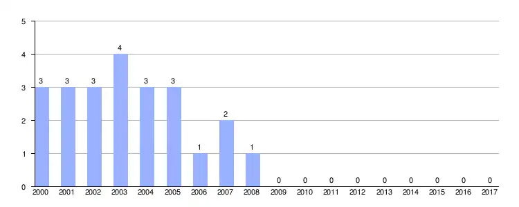 | Gráfica de evolución demográfica de Linares de Bricia entre 2000 y 2017 |