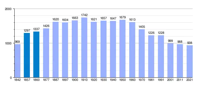 | Gráfica de evolución demográfica de Linares de Riofrío[6] entre 1842 y 2021 |