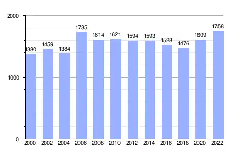 | Gráfica de evolución demográfica de Llanos de Vícar entre 2000 y 2022 |