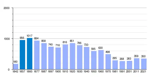 | Gráfica de evolución demográfica de Llavorsí[3] entre 1842 y 2021 |