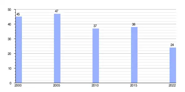 | Gráfica de evolución demográfica de Lobás (lugar) entre 2000 y 2022 |