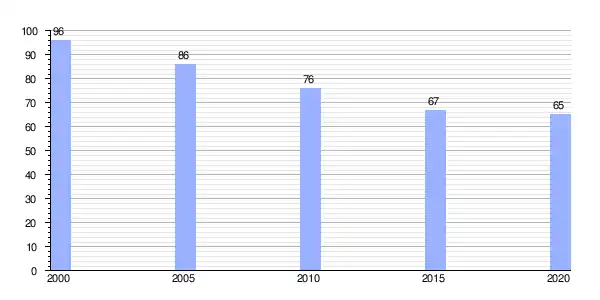 | Gráfica de evolución demográfica de Lobelle entre 2000 y 2020 |
