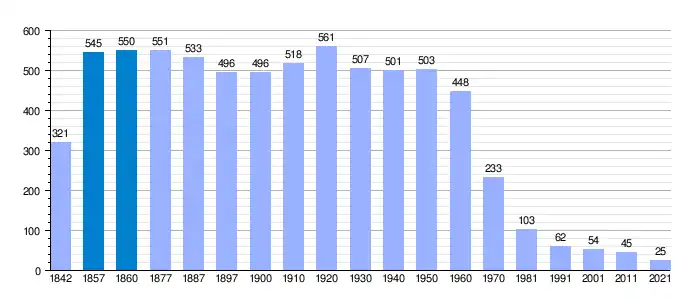 | Gráfica de evolución demográfica de Lobera de Onsella[4] entre 1842 y 2021 |