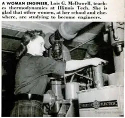 UNA INGENIERA, Lois G. McDowell, enseña termodinámica en Illinois Tech. Se alegra de que otras mujeres, en su escuela y en otros lugares, estudien para ser ingenieras.Popular Science, September 1953