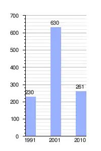 | Variación intercensal | +174% (1991, 2001) | |