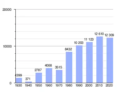 | Gráfica de evolución demográfica de Lombardía entre 1930 y 2020 |