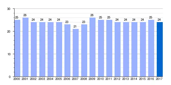 | Gráfica de evolución demográfica de Lopidana[3] entre 2000 y 2017 |