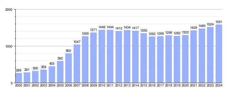 | Gráfica de evolución demográfica de Los Ángeles de San Rafael[6] entre 2000 y 2024 |