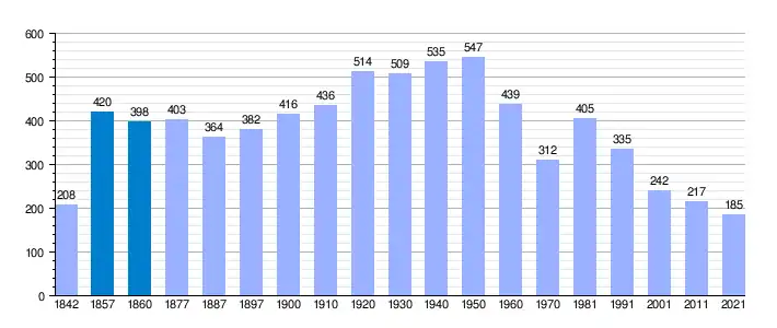 | Gráfica de evolución demográfica de Los Barrios de Bureba[3] entre 1842 y 2021 |