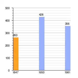Población según el Diccionario geográfico-estadístico-histórico de España y sus posesiones de Ultramar.[5] Población de derecho (1950-1981) según el padrón municipal del INE.[1] |