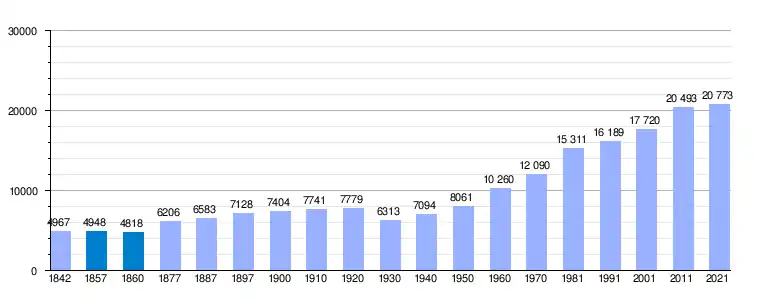 | Gráfica de evolución demográfica de Los Llanos de Aridane[5] entre 1842 y 2021 |