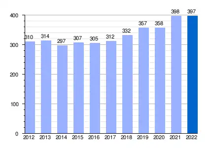 | Gráfica de evolución demográfica de Los Tablones entre 2012 y 2022 |