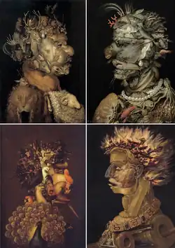 Los cuatro elementos es una serie de pinturas del artista italiano Giuseppe Arcimboldo realizadas en 1566, durante el Renacimiento. Le fueron encargadas por Maximiliano II, emperador del Sacro Imperio Romano Germánico. Los retratos representan el perfil de rostros formados por diversos objetos o animales. La tierra está representada por animales terrestres; El aire, por aves; El agua, por criaturas marinas; El fuego, por cañones y maderas en llamas. Esta serie intenta expresar la armonía del caos, con animales salvajes que forman fisonomías distintas. También ensalza a Maximiliano, sugiriendo que es un gobernante que controla incluso a los cuatro elementos primarios.