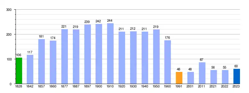 | Gráfica de evolución demográfica de Losana de Pirón[17][6] entre 1828 y 2023 |